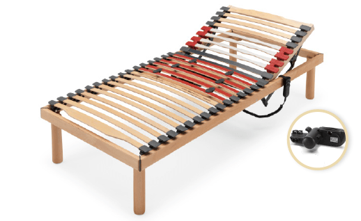 FEDRA MOTORIZATĂ CAP SAU CAP-PICIOARE Cu lamele ce au fiecare o mișcare independentă, este realizată cu ajutorul unor tehnologii avansate in construcția lemnului. Aceste lamele (fixate cu suporti elastici SEBS) de 38 mm lațime, asigură o flexibilitate optimă și au elemente de rigidizare in zona lombară. Motorul somierei este acționat prin telecomandă. Îndeplinind toate exigentele necesare de ridicare și coborîre a corpului, somiera este un produs ideal atât pentru persoanele care doresc un grad ridicat de confort dar mai ales pentru persoanele imobilizate, astmatice, etc. |