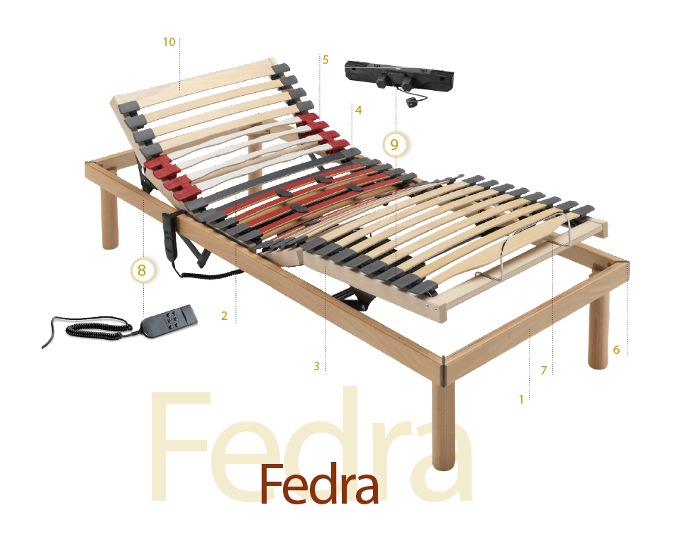 FEDRA FIXĂ Este un produs ce ofera siguranta si confort, creată special dintr-un profil în multistrat din fag cu finisaj în ceară naturală. Somiera poate fi fixata atat pe cele patru picioare cat si direct pe rama patului. Partea estetica a somierei nu a fost deloc neglijata astfel ca finisajele bine realizate completeaza imaginea unui produs de calitate. |